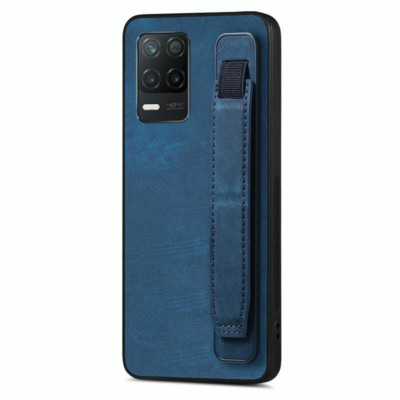 For Realme 8 5G / V13 5G Retro Wristband Holder Leather Back Phone Case(Blue)