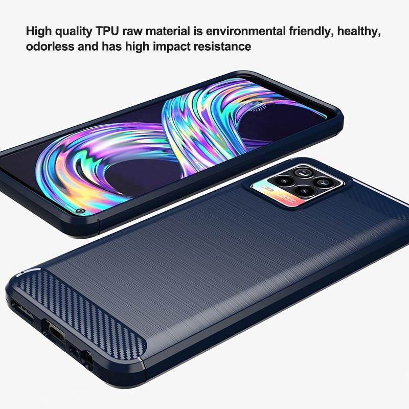 For Realme 8 Brushed Texture Carbon Fiber TPU Phone Case(Blue)