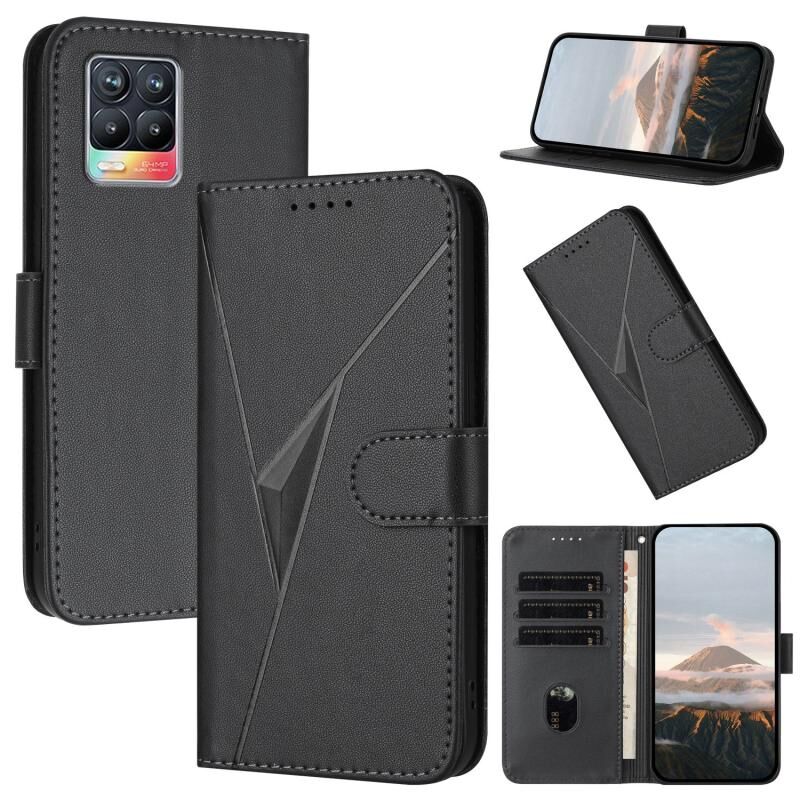 Για Realme 8 Τρίγωνο μοτίβο αγκράφα κούμπωμα δερμάτινη θήκη τηλεφώνου (μαύρο)