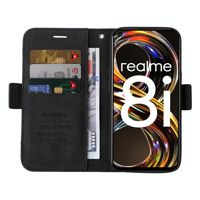 For Realme 8i BETOPNICE Dual-side Buckle Leather Phone Case(Black) (BETOPNICE)
