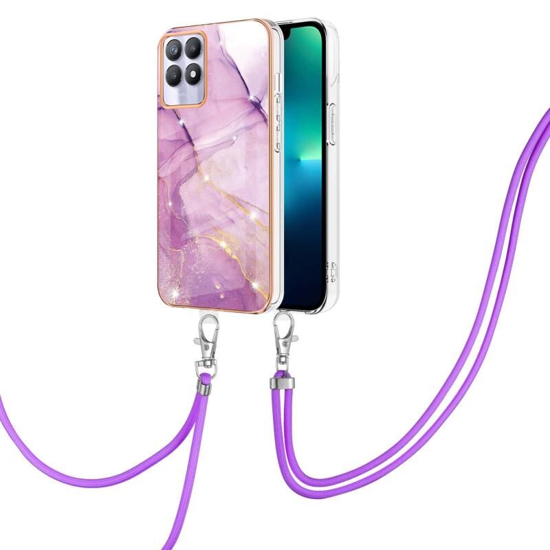 Θήκη τηλεφώνου Realme 8i Electroplating Marble IMD TPU με κορδόνι (Μωβ 001)