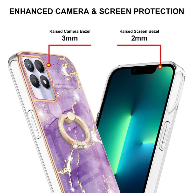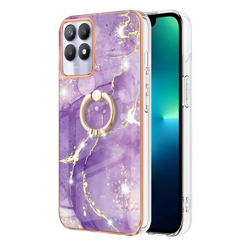 Θήκη τηλεφώνου Realme 8i με Ηλεκτρολυτική Επιμετάλλωση, σχέδιο Μάρμαρου IMD, TPU με Δακτύλιο Στήριξης (Μωβ 001)