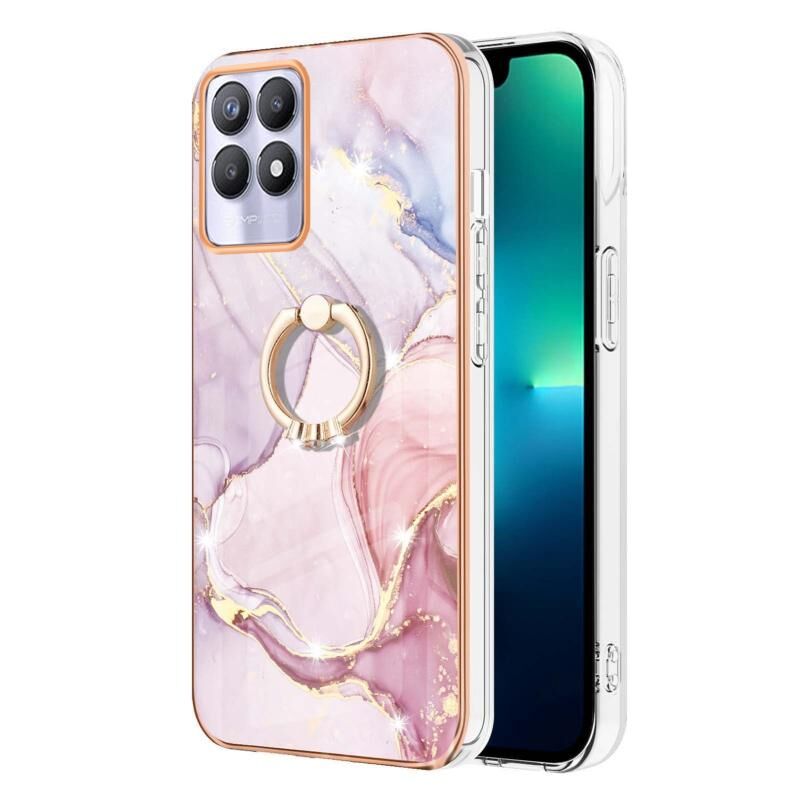 Θήκη τηλεφώνου Realme 8i με Ηλεκτρολυτική Επιμετάλλωση, σχέδιο Μάρμαρου IMD, TPU με Δακτύλιο Στήριξης (Μωβ 001)