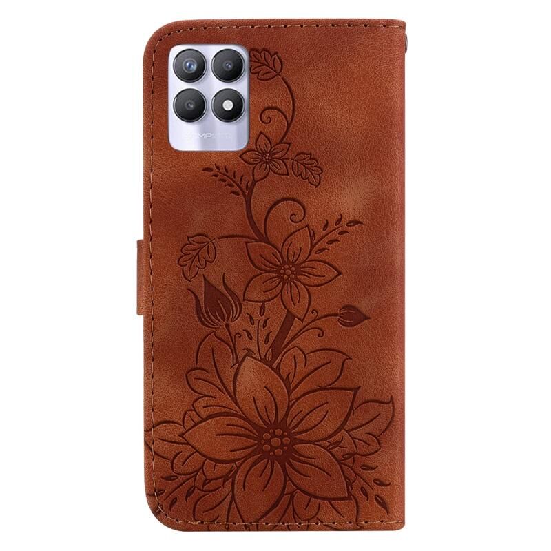 For Realme 8i Lily Embossed Leather Phone Case(Brown)