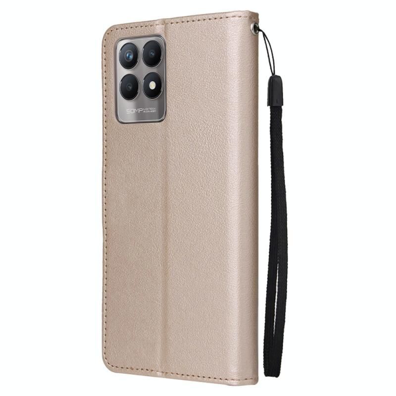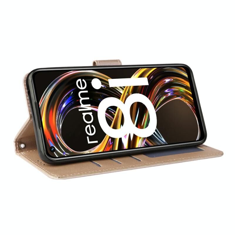 Για Realme 8i Πολυλειτουργική οριζόντια Flip δερμάτινη θήκη με τρεις υποδοχές για κάρτες (χρυσό)