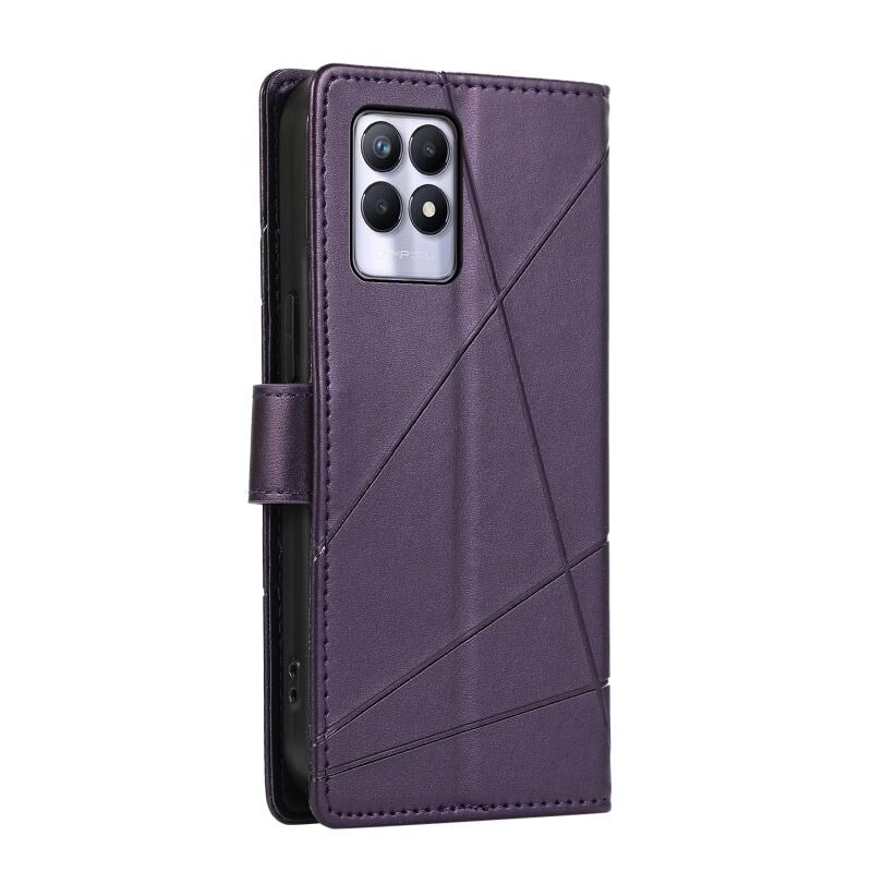 For Realme 8i PU Genuine Leather Texture Embossed Line Phone Case(Purple)