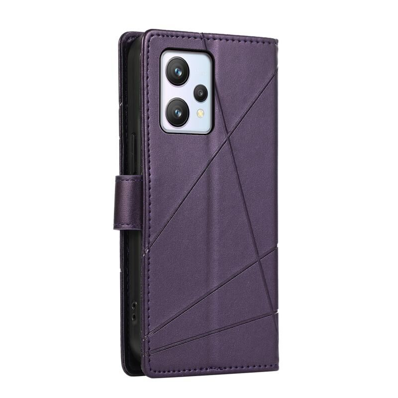 For Realme 9 4G PU Genuine Leather Texture Embossed Line Phone Case(Purple)