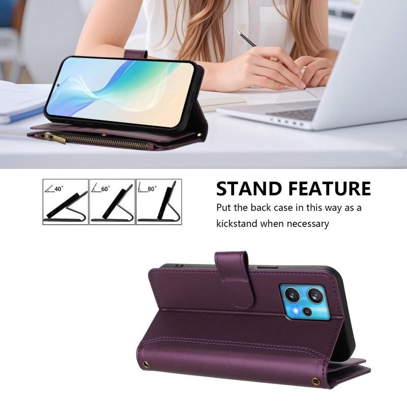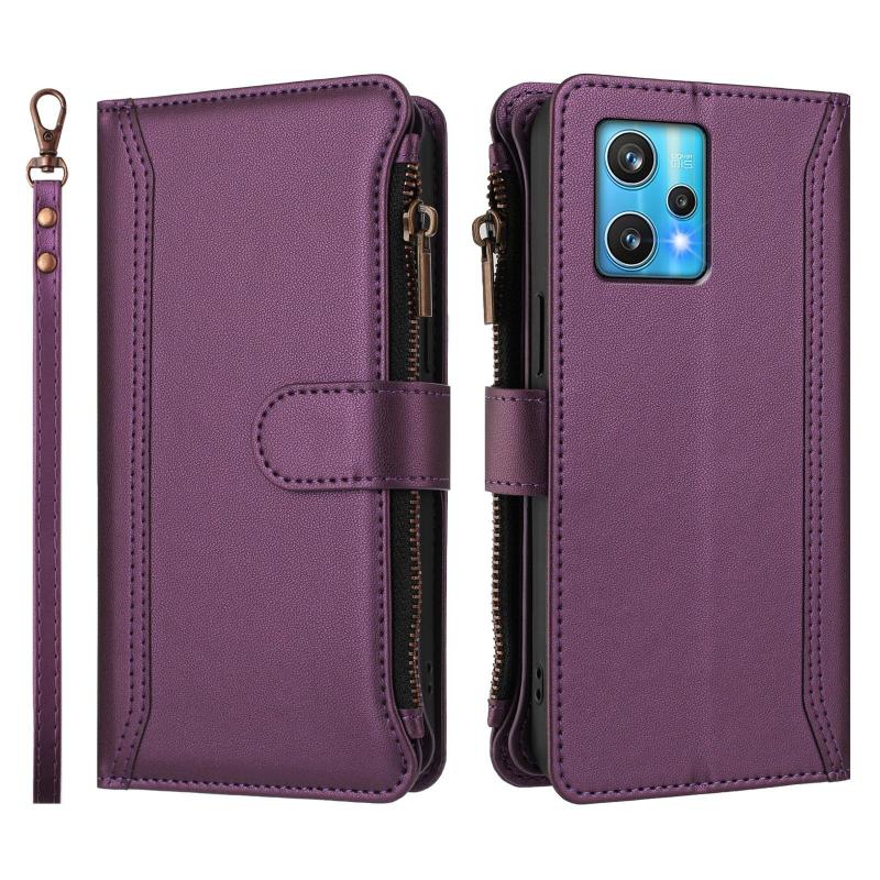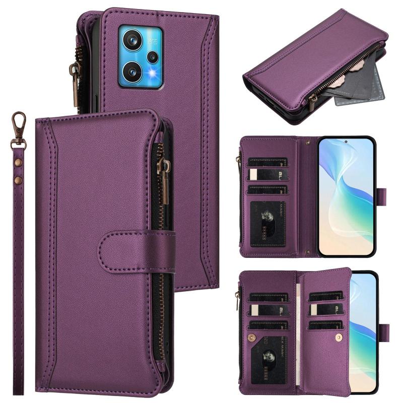For Realme 9 Pro+ 5G / Narzo 50 Pro Magnetic Closure 9 Card Slots Zipper Leather Case with Hand Strap(Purple)