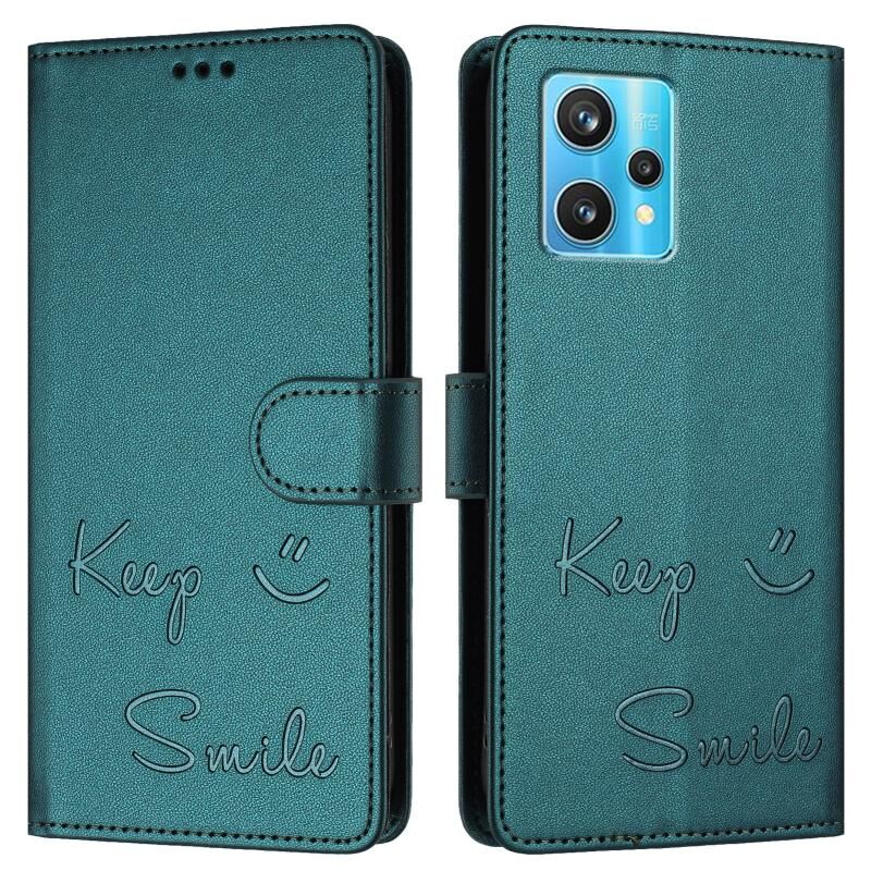 Για Realme 9 Pro + 5G Χαμόγελο ανάγλυφο RFID δερμάτινη θήκη τηλεφώνου (Πράσινο παγώνι)