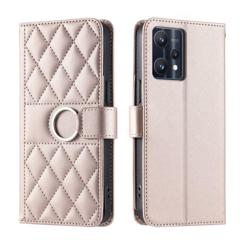 For Realme 9 Pro+ / 9 4G Ring Buckle Rhombic Leather Phone Case(Rose Gold)