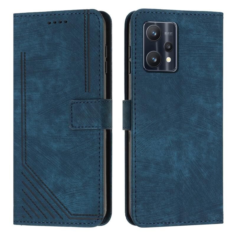 Για το Realme 9 Pro + / 9 4G δέρμα Feel Stripe μοτίβο δερμάτινη θήκη τηλεφώνου με κορδόνι (μπλε)