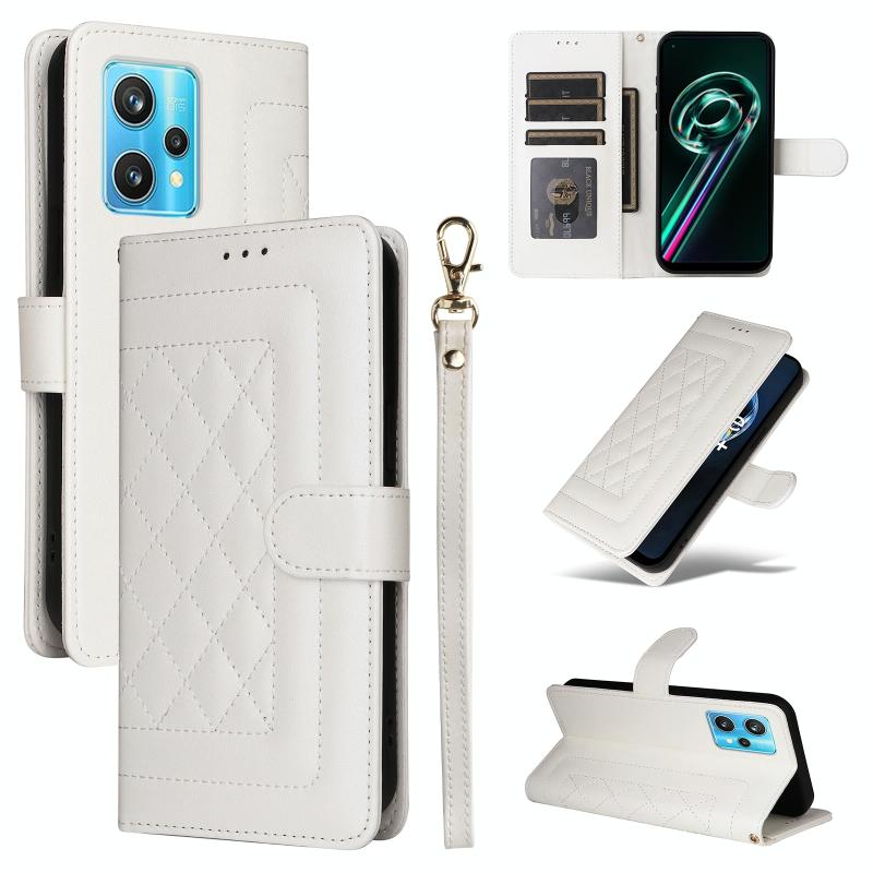 For Realme 9 Pro+ Diamond Lattice Leather Flip Phone Case(White)