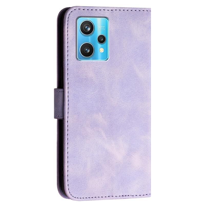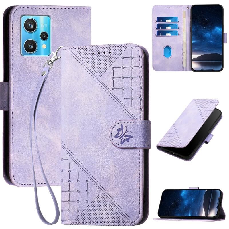 For Realme 9 Pro+ Grid Butterfly Embossed Pattern Leather Phone Case with Lanyard(Light Purple)