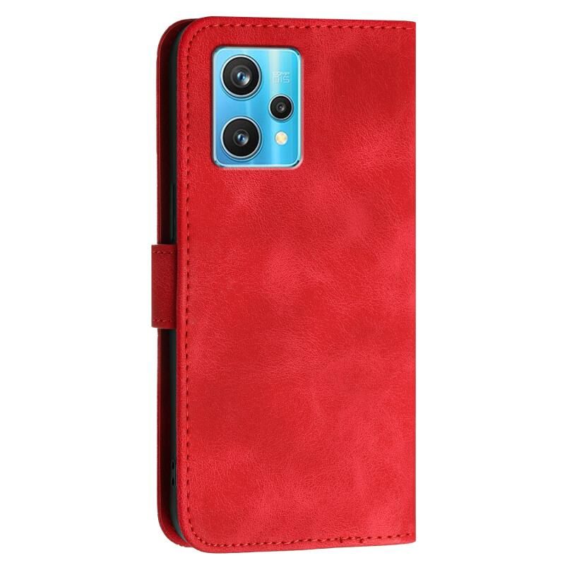 For Realme 9 Pro+ Grid Butterfly Embossed Pattern Leather Phone Case with Lanyard(Red)