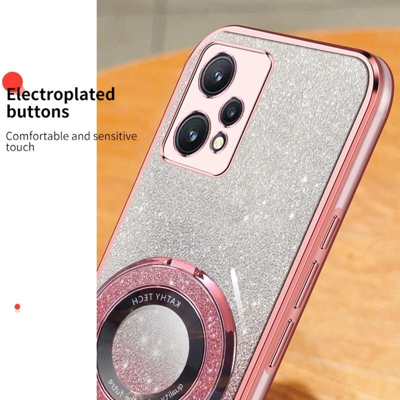 For Realme 9 Pro+ Plated Gradient Glitter Round Holder TPU Phone Case(Sierra Blue)
