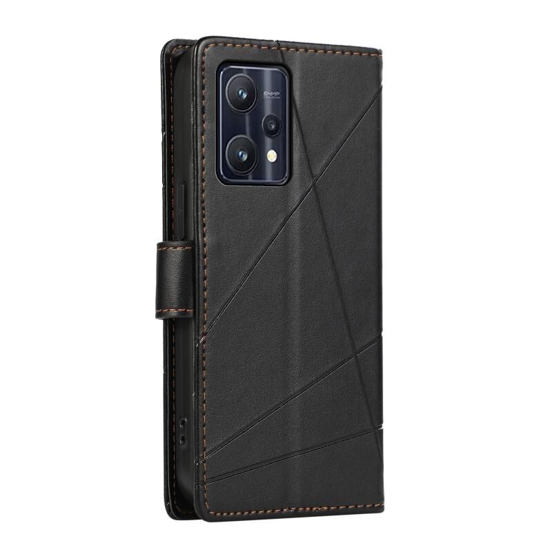 For Realme 9 Pro+ PU Genuine Leather Texture Embossed Line Phone Case(Black)