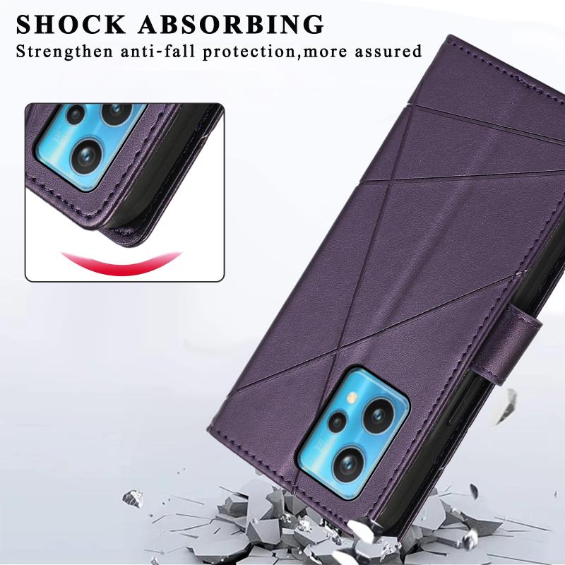 For Realme 9 Pro PU Genuine Leather Texture Embossed Line Phone Case(Purple)