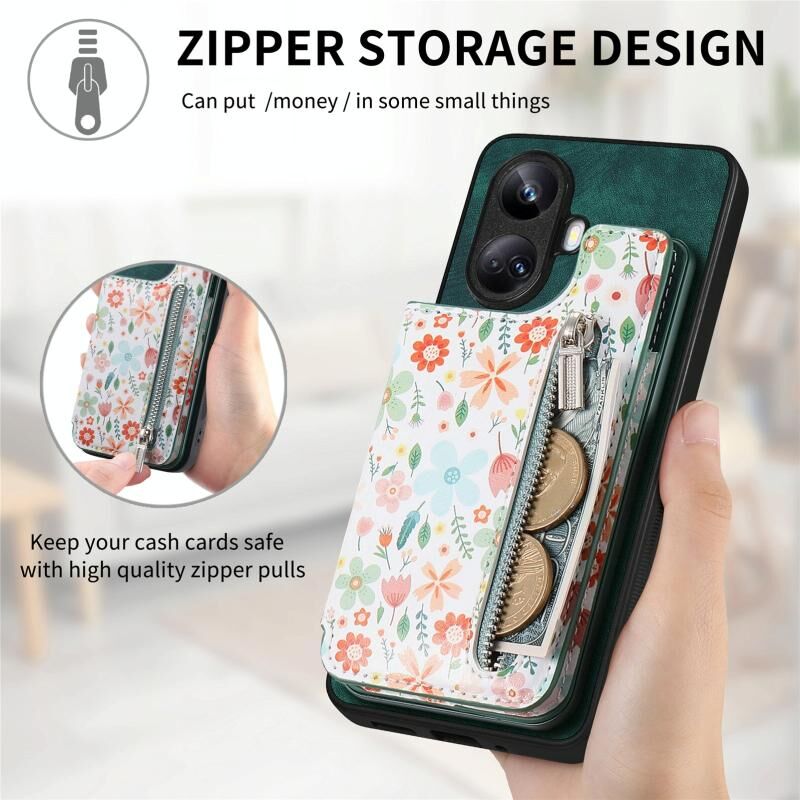 Για Realme 9 Pro Ρετρό ζωγραφισμένο φερμουάρ πορτοφόλι πίσω θήκη τηλεφώνου (πράσινο)