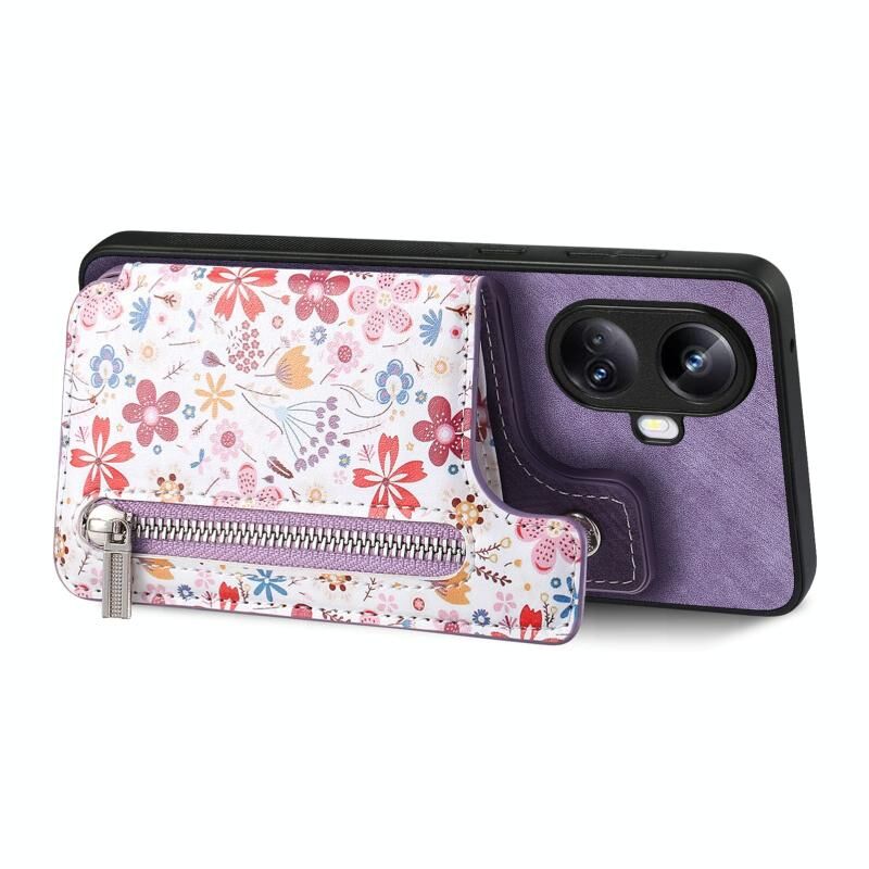 Για Realme 9 Pro Ρετρό ζωγραφισμένο φερμουάρ πορτοφόλι πίσω υπόθεση τηλεφώνου (μωβ)