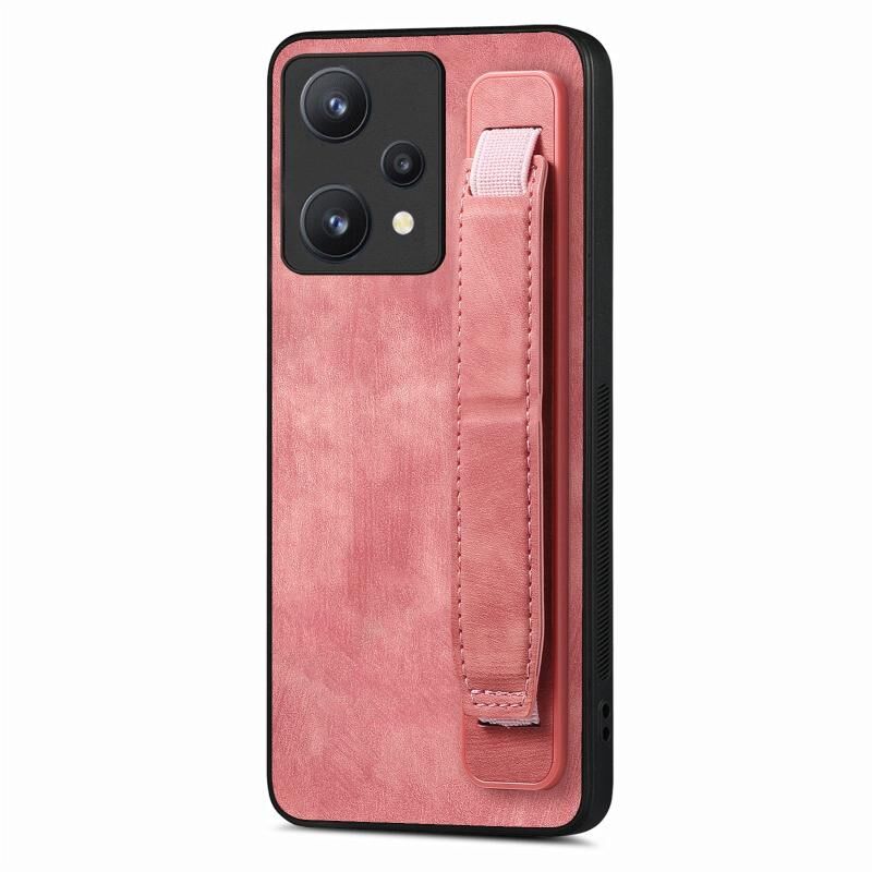 Για Realme 9 Pro Retro Wristband Holder δέρμα πίσω υπόθεση τηλεφώνου (ροζ)
