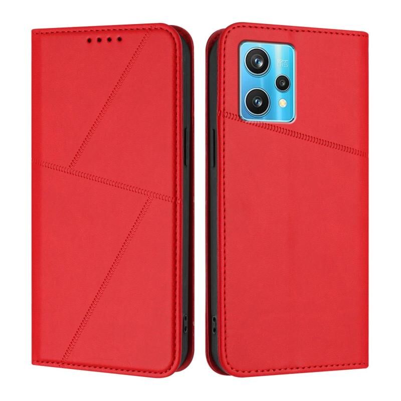 For Realme 9 Pro+ Strong Magnetic Frosted Flip Leather Phone Case(Red)