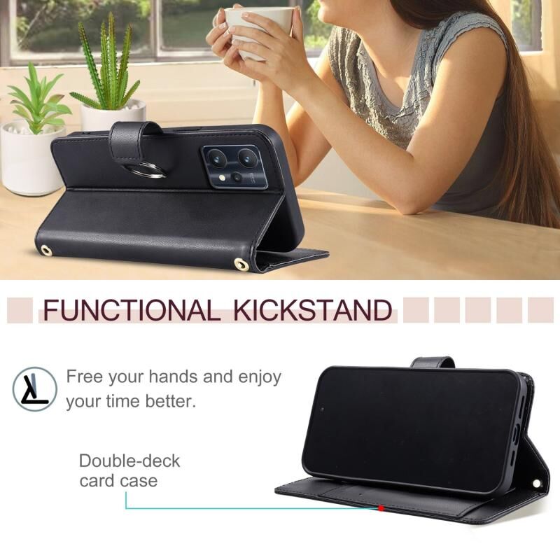For Realme 9 Pro / V25 / 9 5G EU Ring Buckle Rhombic Leather Phone Case(Black)