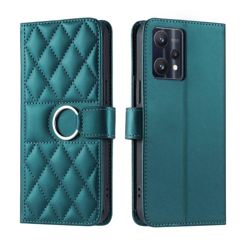 For Realme 9 Pro / V25 / 9 5G EU Ring Buckle Rhombic Leather Phone Case(Green)