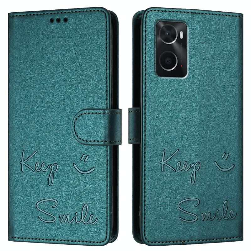 Για Realme 9i 4G Χαμόγελο ανάγλυφο RFID δερμάτινη θήκη τηλεφώνου (Πράσινο παγώνι)