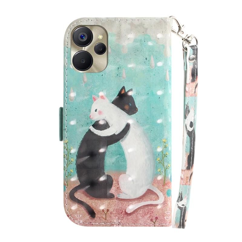 Θήκη τηλεφώνου από δέρμα με οριζόντιο άνοιγμα 3D με χρώματα για Realme 9i 5G (Μαύρη Λευκή Γάτα)