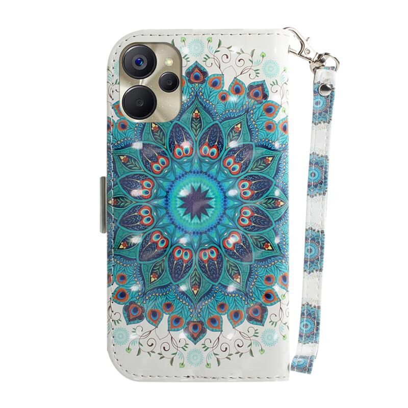 Θήκη τηλεφώνου από δέρμα με οριζόντιο άνοιγμα 3D με χρώματα για Realme 9i 5G (Στεφάνι Παγωνιού)