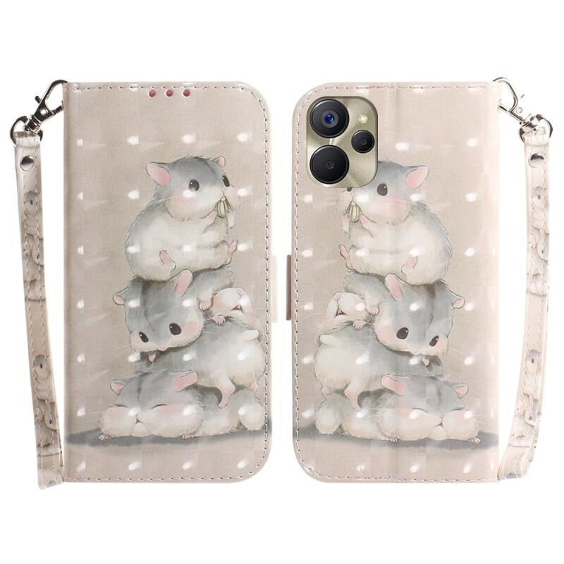 Θήκη τηλεφώνου από δέρμα με οριζόντιο άνοιγμα και έγχρωμο 3D σχέδιο για Realme 9i 5G (Σκιουράκια)