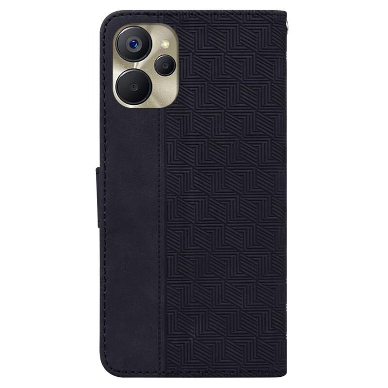 Για Realme 9i 5G Γεωμετρική ανάγλυφη θήκη τηλεφώνου με δερμάτινη επένδυση (μαύρο)