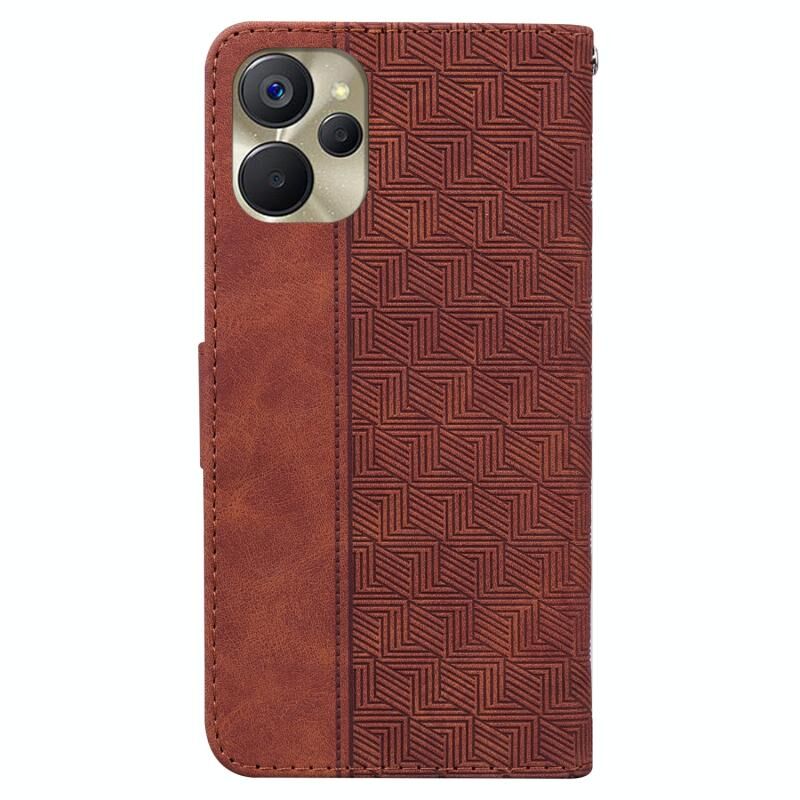 Για Realme 9i 5G Γεωμετρική ανάγλυφη θήκη τηλεφώνου από δέρμα (καφέ)