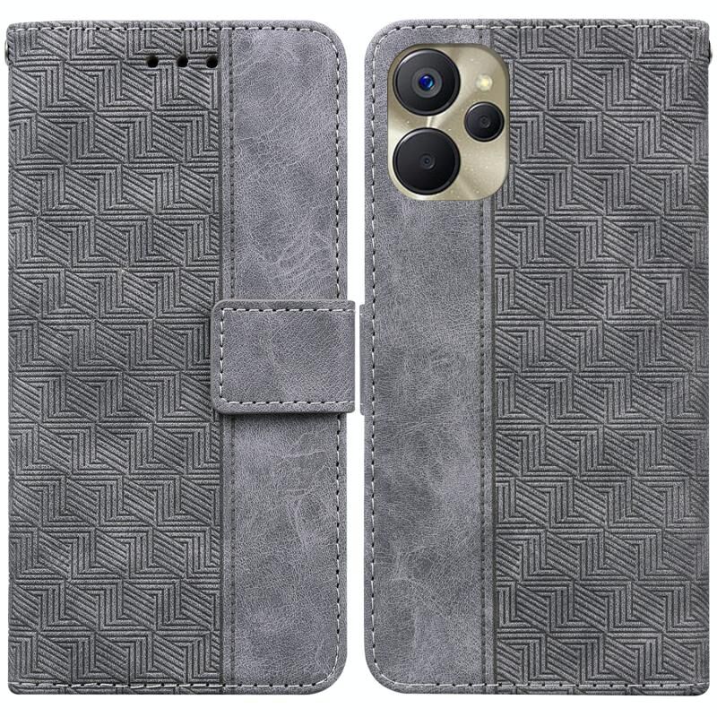 Για Realme 9i 5G Γεωμετρική ανάγλυφη θήκη τηλεφώνου από δέρμα (γκρι)