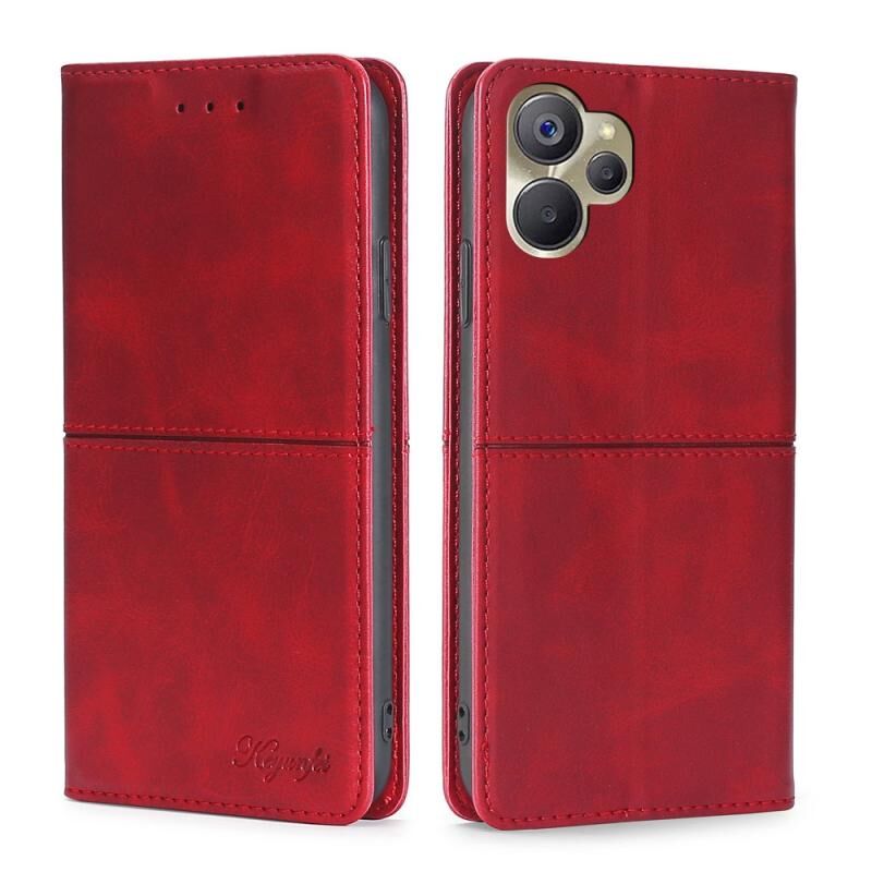 Για Realme 9i 5G Global/10 5G Θήκη κινητού τηλεφώνου από δέρμα αγελάδας με υφή μαγνητικού δέρματος (κόκκινο)