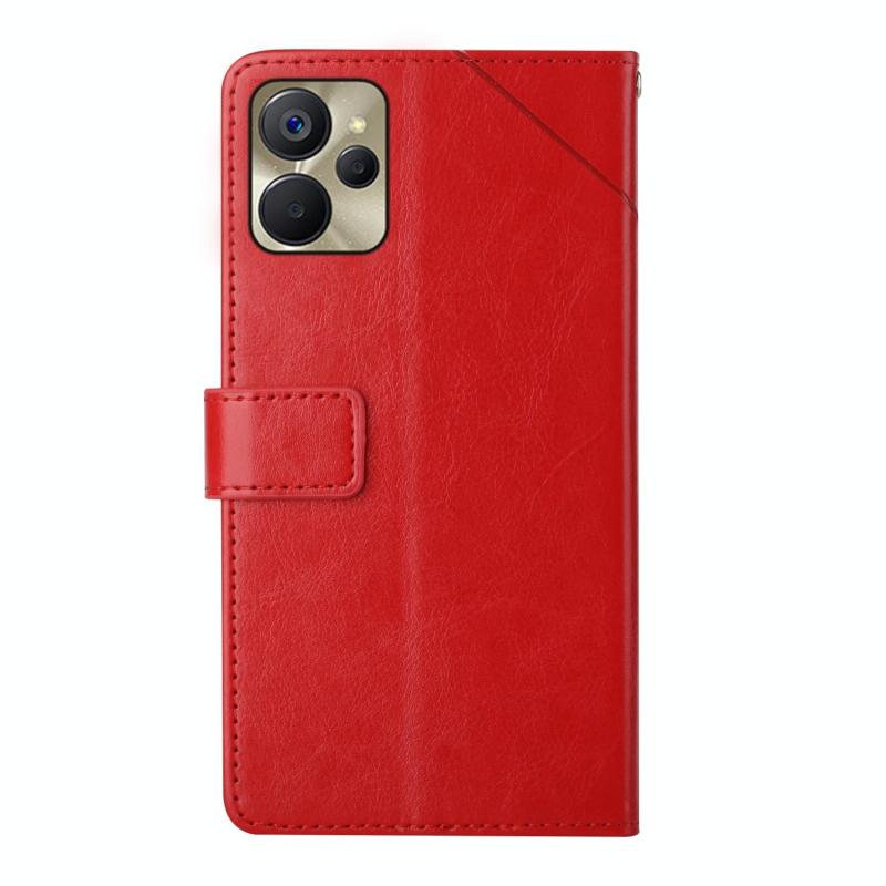 Θήκη τηλεφώνου από δέρμα με σχέδιο Y και πτυσσόμενη για Realme 9i 5G HT01 (Κόκκινη)