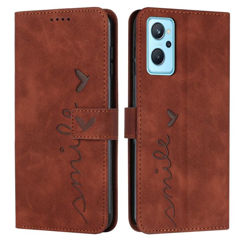 Για Realme 9i 5G/V20 5G/V30t/V30 δέρμα αίσθηση καρδιά μοτίβο δερμάτινη θήκη τηλεφώνου (καφέ)