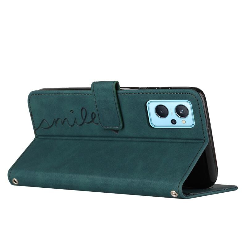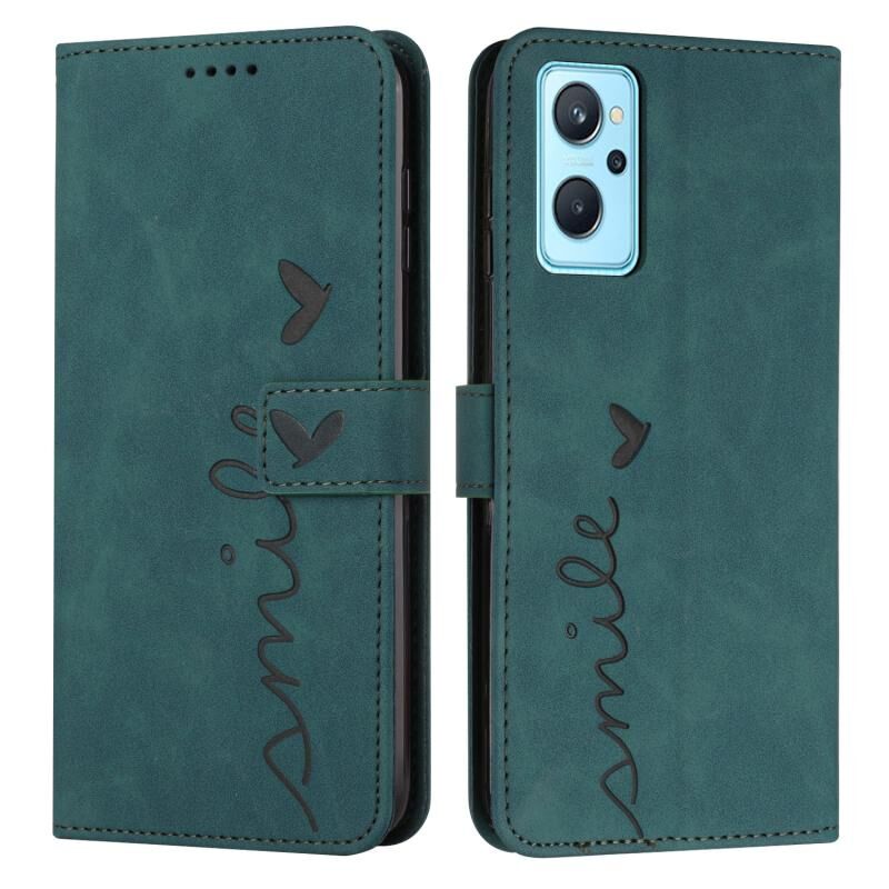 Για Realme 9i 5G/V20 5G/V30t/V30 δέρμα αίσθηση καρδιά μοτίβο δερμάτινη θήκη τηλεφώνου (πράσινο)