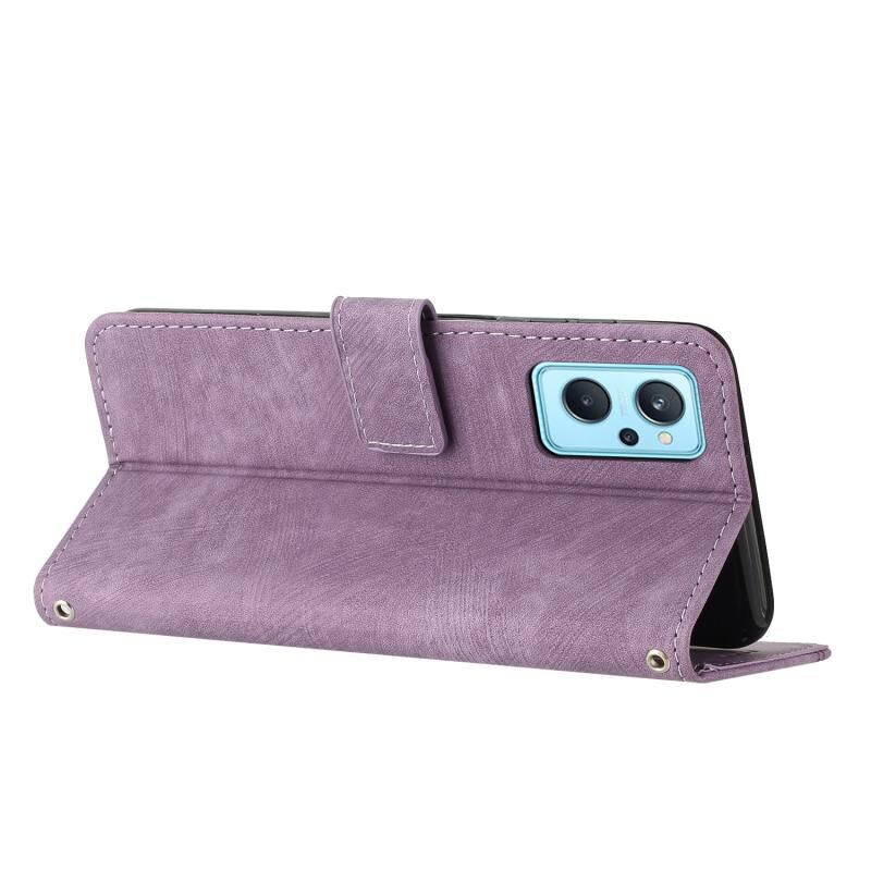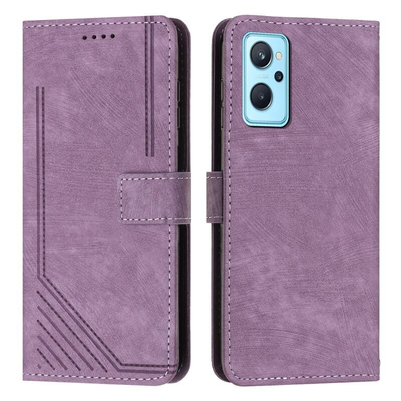 For Realme 9i 5G/V20 5G/V30t/V30 Skin Feel Stripe Pattern Leather Phone Case with Lanyard(Purple)