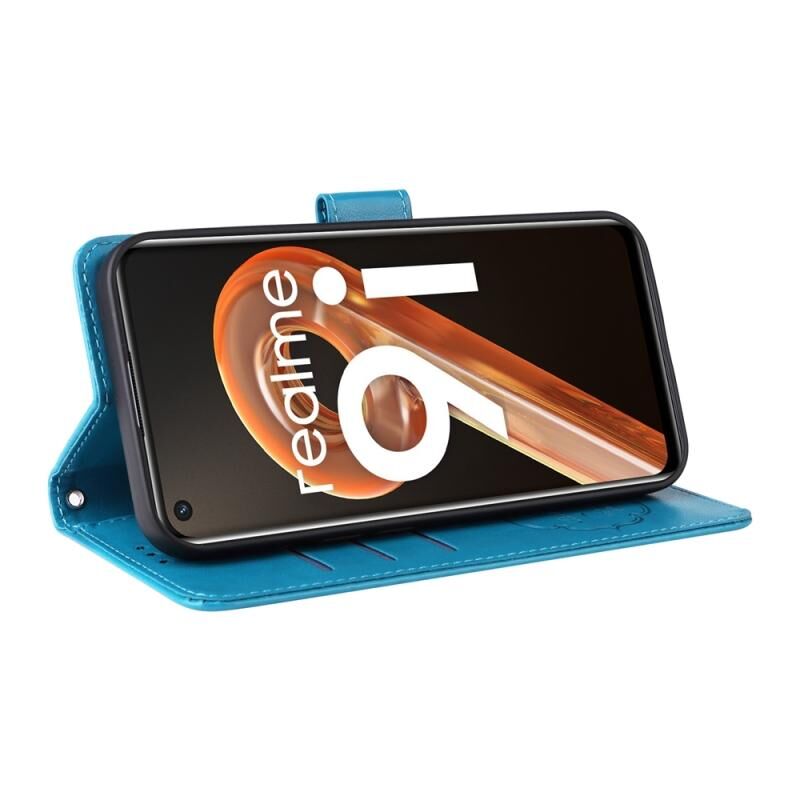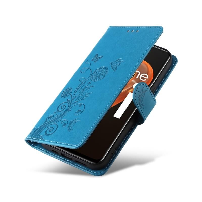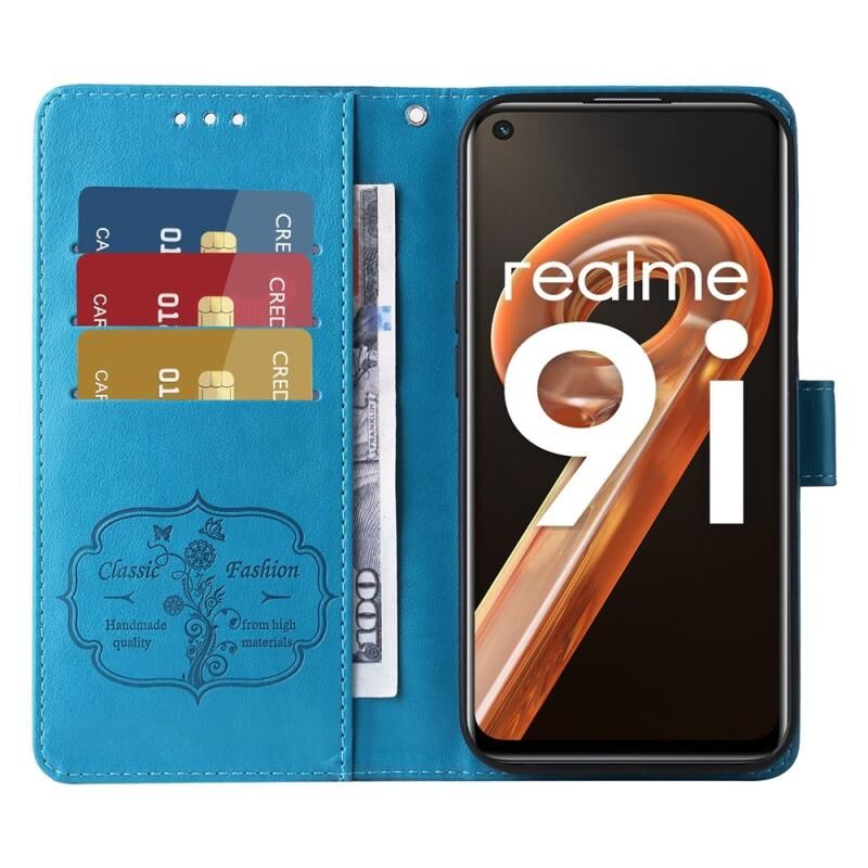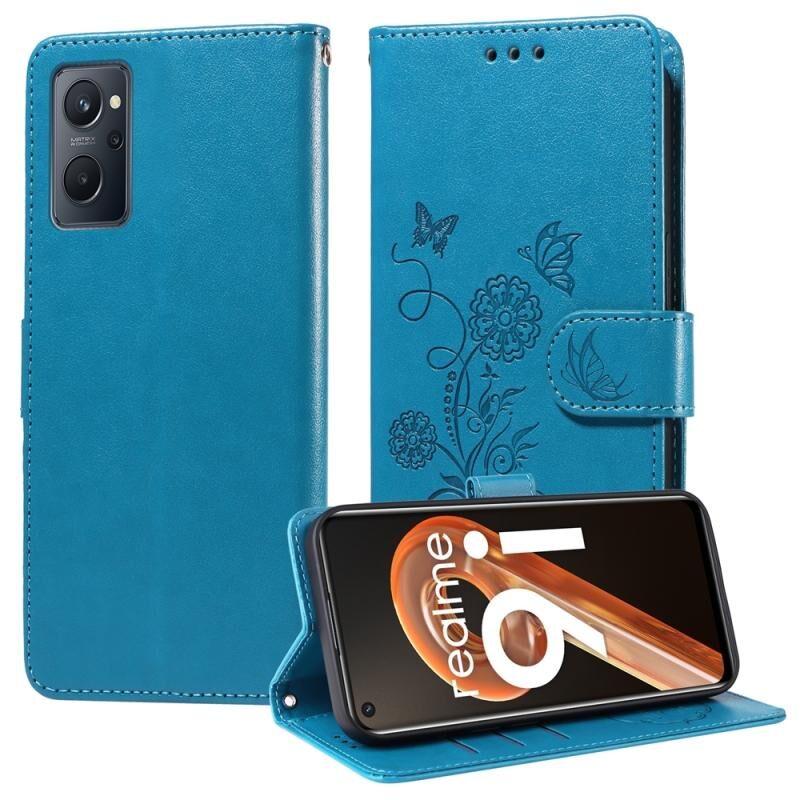 For Realme 9i / A36 4G / A76 4G Global Embossed Butterfly Flowers Leather Phone Case(Blue)