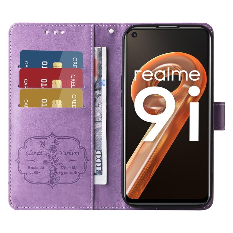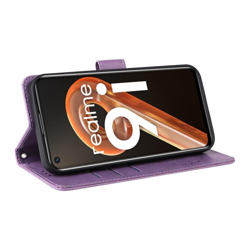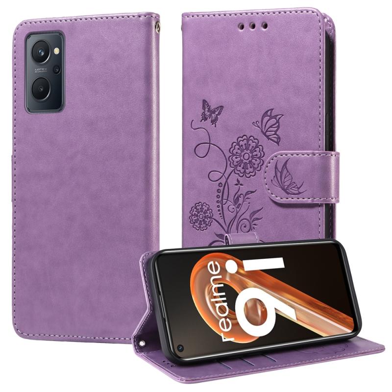 For Realme 9i / A36 4G / A76 4G Global Embossed Butterfly Flowers Leather Phone Case(Purple)