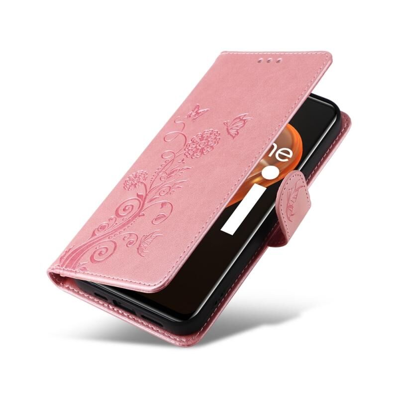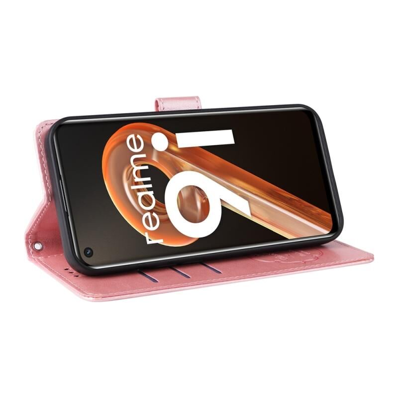 For Realme 9i / A36 4G / A76 4G Global Embossed Butterfly Flowers Leather Phone Case(Rose Gold)