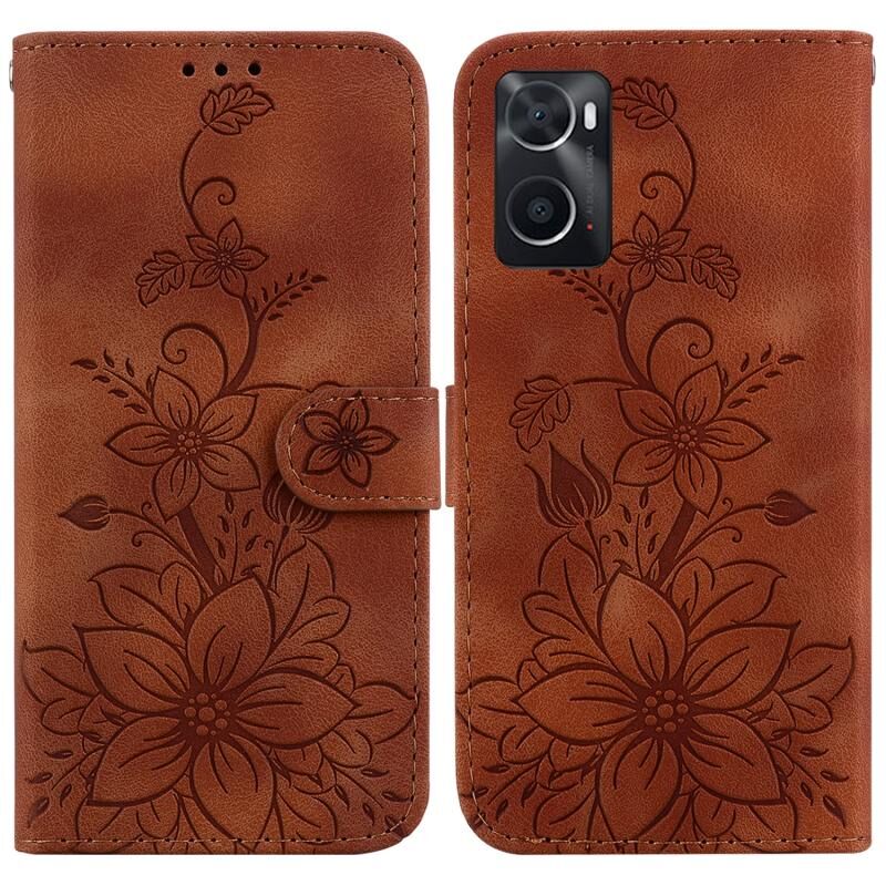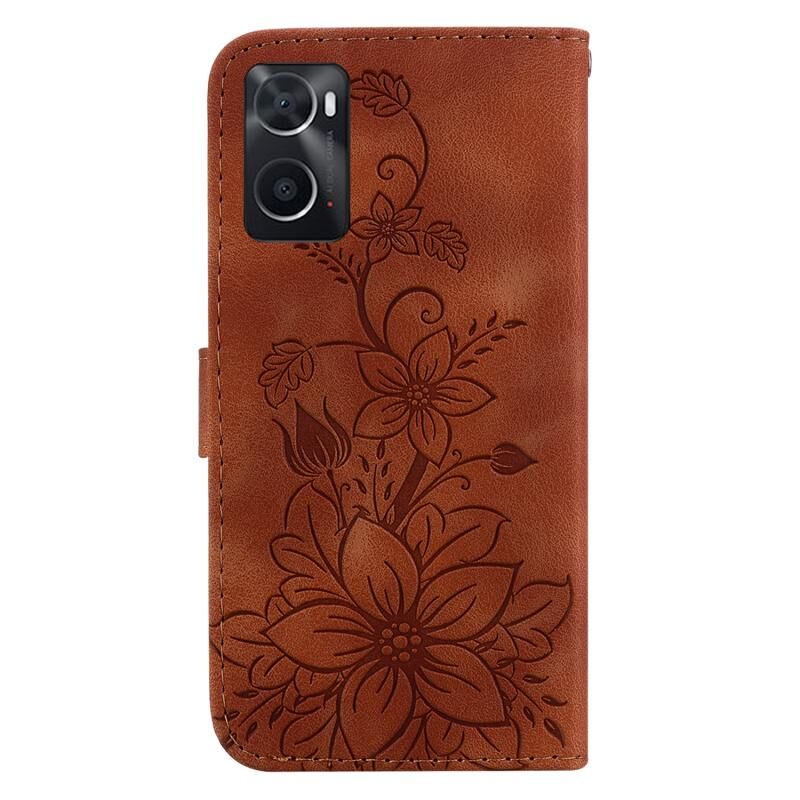 For Realme 9i / A76 4G / A36 Lily Embossed Leather Phone Case(Brown)