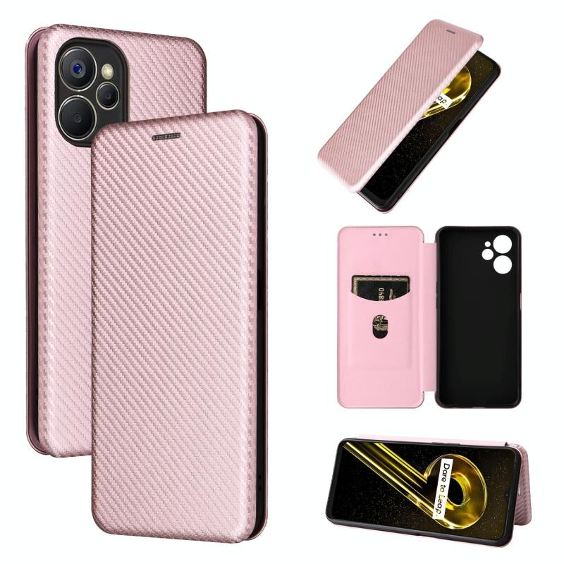 Για Realme 9i Carbon Fiber Texture Δερμάτινη θήκη τηλεφώνου (ροζ)