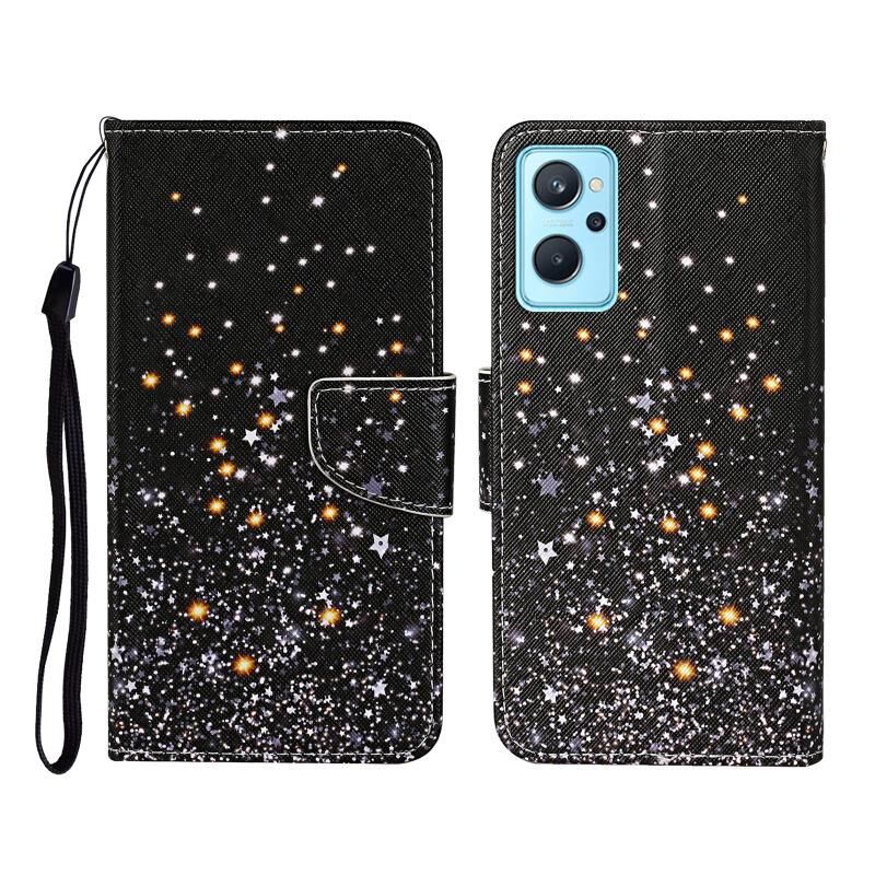 Θήκη τηλεφώνου από δέρμα με σχέδιο πολύχρωμης ζωγραφικής για Realme 9i (Μαύρο Πεντάγραμμο)