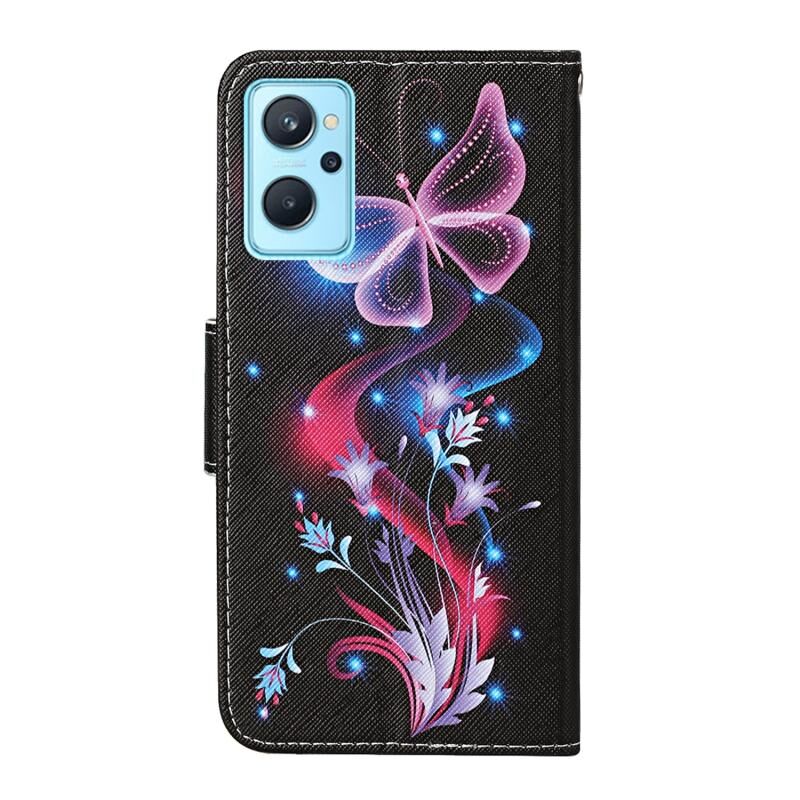 Θήκη τηλεφώνου από δέρμα με σχέδιο πολύχρωμης ζωγραφικής για Realme 9i (Φωτεινή Πεταλούδα)
