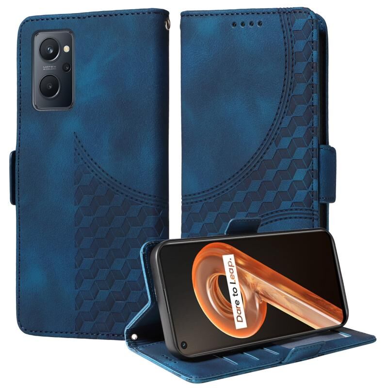 For Realme 9i Embossed Rhombus Starry Leather Phone Case(Blue)