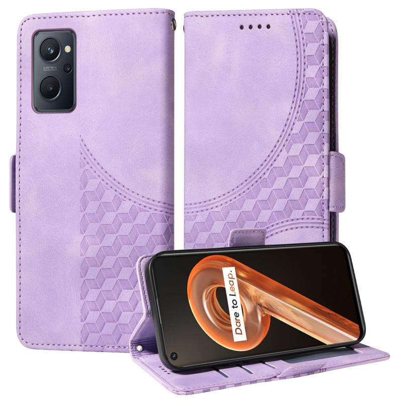 For Realme 9i Embossed Rhombus Starry Leather Phone Case(Purple)