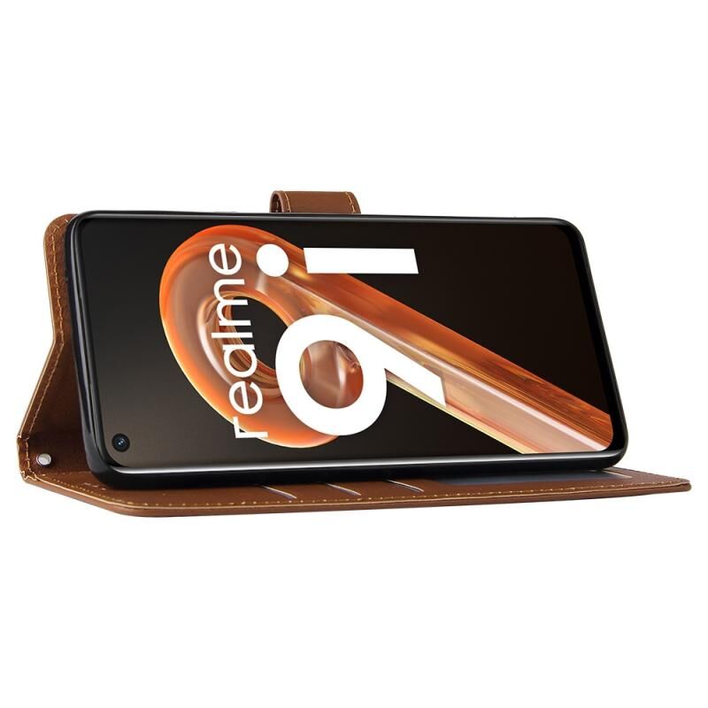 Για Realme 9i Πολυλειτουργική οριζόντια Flip δερμάτινη θήκη με τρεις υποδοχές για κάρτες (καφέ)
