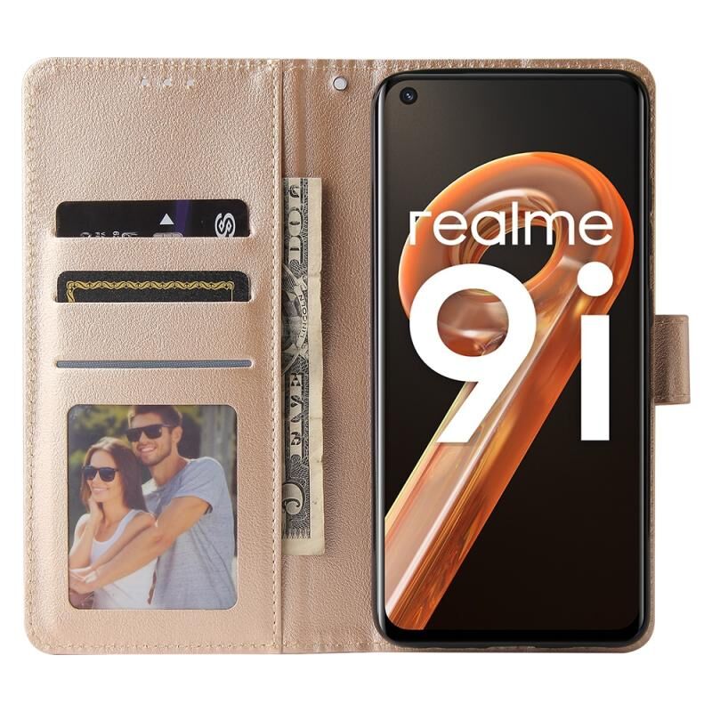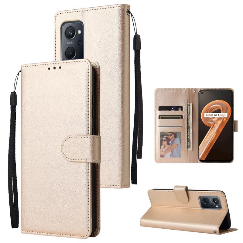 Για Realme 9i Πολυλειτουργική οριζόντια Flip δερμάτινη θήκη με τρεις υποδοχές για κάρτες (χρυσό)